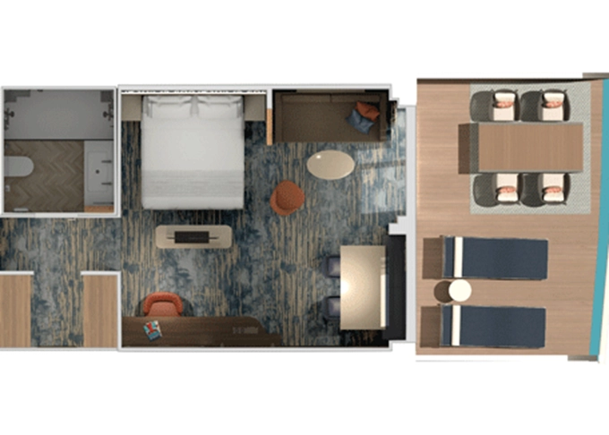 | HU - Suite Havana Cabana Corner 33 m² + vonkajšie rohové patio 15 m². 8. paluba vpredu. Max 3 osoby. Tropický štýl, vstup do exkluzívnej zóny Havana. Výhody Suite. | 5 280 € 2 640 € za osobu | ||