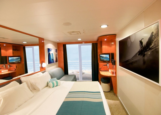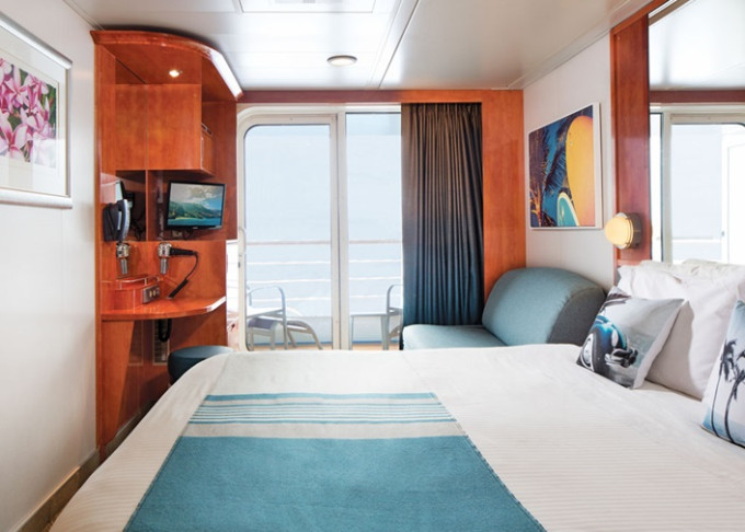 B1 - Kajuta s veľkým balkónom Aft-facing 21 m² / balkón 8 m². 7. až 10. paluba - vzadu. Max 3 osoby. 7 418 € 3 709 € za osobu