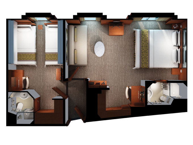 S4 - Deluxe Family Suite od 56 m² / balkón 9 m². 9. paluba - vpredu. Max 5 osôb. Výhody Suite. 17 278 € 8 639 € za osobu